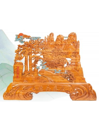 肥城桃木雕刻:《泰山全景图》